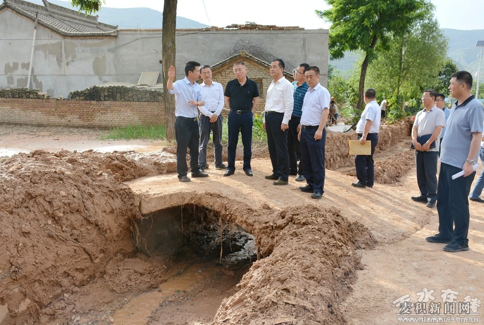 (在麦积区琥珀镇霍家川村查看泥石流灾害抢险救灾情况)