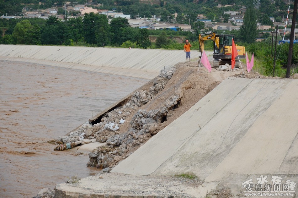 (查看新阳河堤及新阳大桥等受损情况)