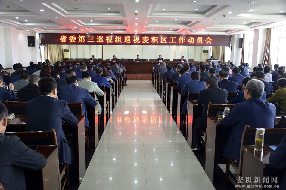 根据十三届省委第二轮巡视的统一安排,2018年4月26日,省委第三巡视组巡视麦积区工作动员会召开。动员会上,省委第三巡视组组长李学民对做好巡视工作作了讲话,市政协副主席、麦积区委书记张智明主持会议并作表态讲话。 省委第三巡视组成员,区四大组织班子成员,区法院院长、区检察院检察长出席会议。其他在职县处级干部,区委办、区人大办、区政府办、区政协办主任,区政协秘书长,区纪委监委、区委组织部班子成员,区直各部门主要负责人、巡视联络组成员,各镇、街道党政主要负责人,巡察办主任,区上两个巡查组全体成员,近年部分退休县级干部及职工代表列席会议。