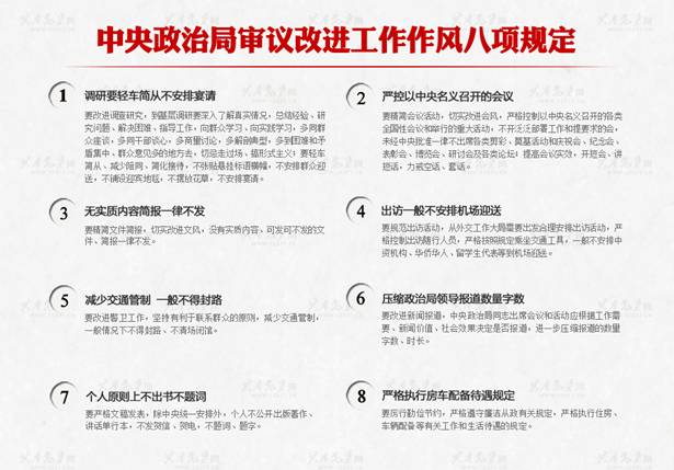 中央政治局审议通过改进工作作风、密切联系群众的八项规定