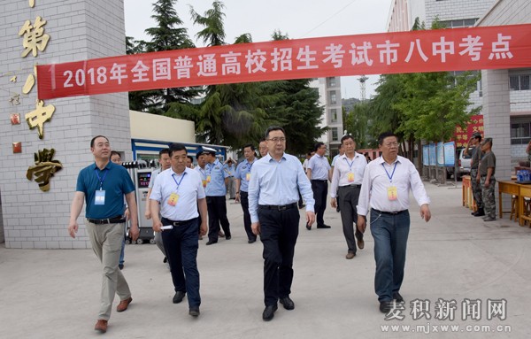 6月6日下午,市政协副主席、麦积区委书记张智明,区人大常委会主任贾应珍,区政协主席杨续祥,区人大常委会副主任赵双喜,副区长赵国平,区政协副主席胡桂琳等四大组织领导带领区招委各成员单位及区直相关部门负责人深入城区各考点,对全区高考准备工作进行了巡视。